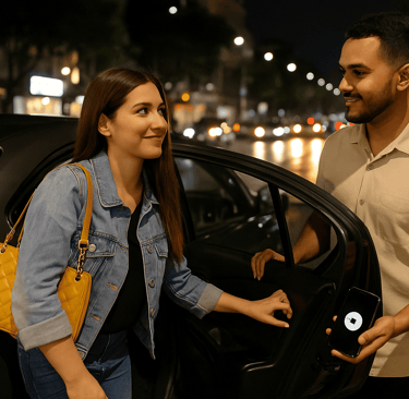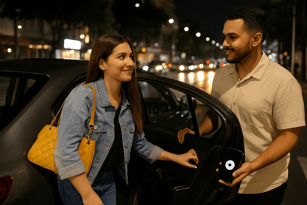 Pide desde un punto iluminado y confirma placa y conductor antes de subir.